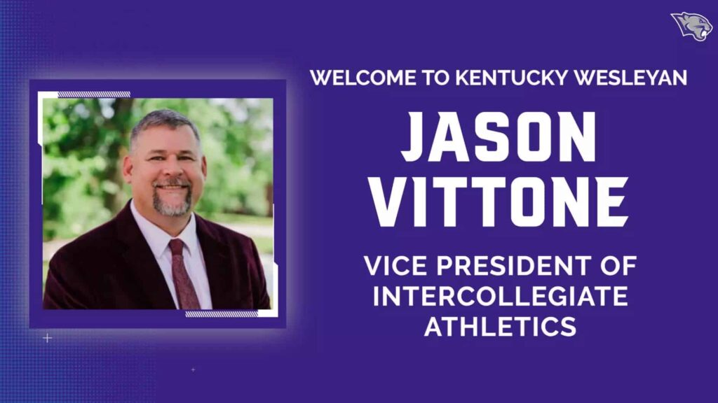 Kentucky Wesleyan College President Dr. James Cousins has announced the appointment of Jason Vittone as Vice President of Intercollegiate Athletics. Vittone, currently Director of Athletics at Sweet Briar College in Sweet Briar, Va., brings nearly 30 years of experience in higher education and collegiate athletics. He will assume his new role on June 15.